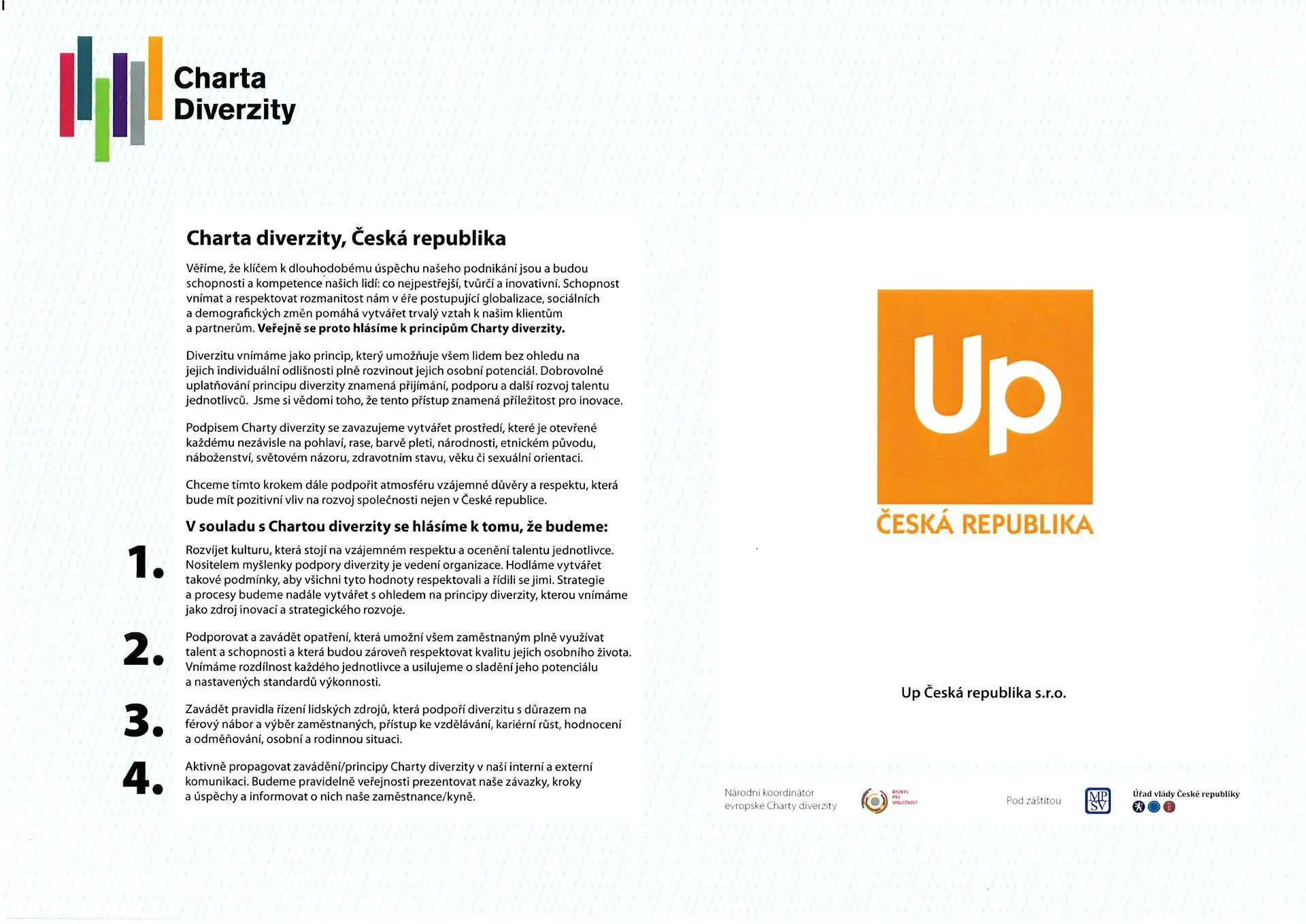 - Jsme signatáři Charta diverzity a jsme striktní v dodržování jejích principů
